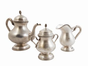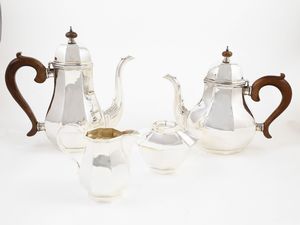 gr 2300 (4) Anni Cinquanta composto da teiera, caffettiera, lattiera e zuccheriera, corpo ottagonale, prese in [..]
