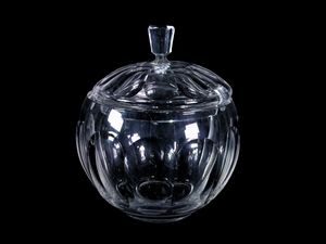Contenitore per frutta sciroppata o mostarda in metallo argentato e cristallo