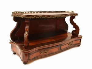 Etagere da tavolo impiallacciata in legno di rosa e mogano