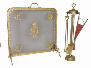 cm 77x70, h cm 78 (6) composto da un parascintille realizzato in stile neoclassico con rete metallica con applicazioni [..]