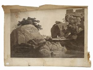 da cm a cm 16x22 a cm 22x28 (5) XVIII/XIX secolo tra cui un'acquaforte di Pio Panfili raffigurante Veduta di [..]