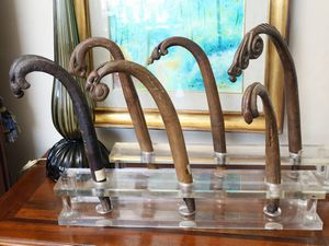 Collezione di sei antichi finali lignei di bastoni cerimoniali