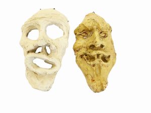 Collezione di antichi finali lignei di bastoni cerimoniali