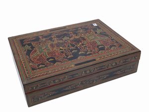 h cm 3,5x18x5 e cm 13x14,5 (2) scatola portapenne in legno di rosa, di forma rettangolare allungata, coperchio [..]