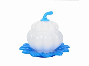 h cm 14 (2) fine del XIX/inizio del XX secolo realizzata come una zucca di colore bianco, corredata da un piattino [..]