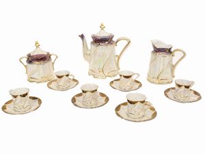 inizio del XX secolo composto da sei tazzine, zuccheriera, caffettiera e lattiera, difetti