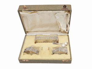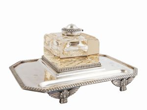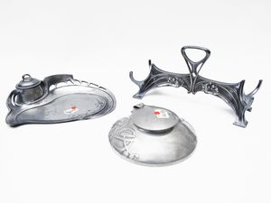 larg da cm 13 a cm 22 inizio del XX secolo di gusto Art Nouveau, due calamai ed un portapenne