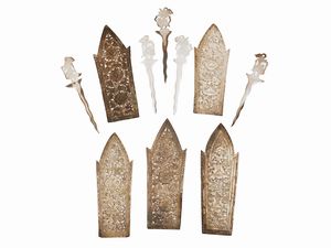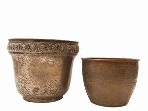 h cm 27, h cm 19 inizio del XX secolo sbalzati con motivi di gusto Dec̣