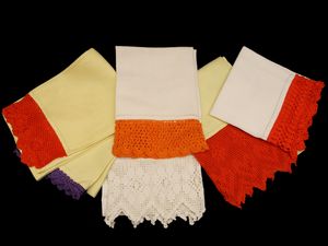 cm 220x134 circa (10) metà del XX secolo piccoli ricami floreali nei toni del rosa e del giallo, corredata da [..]