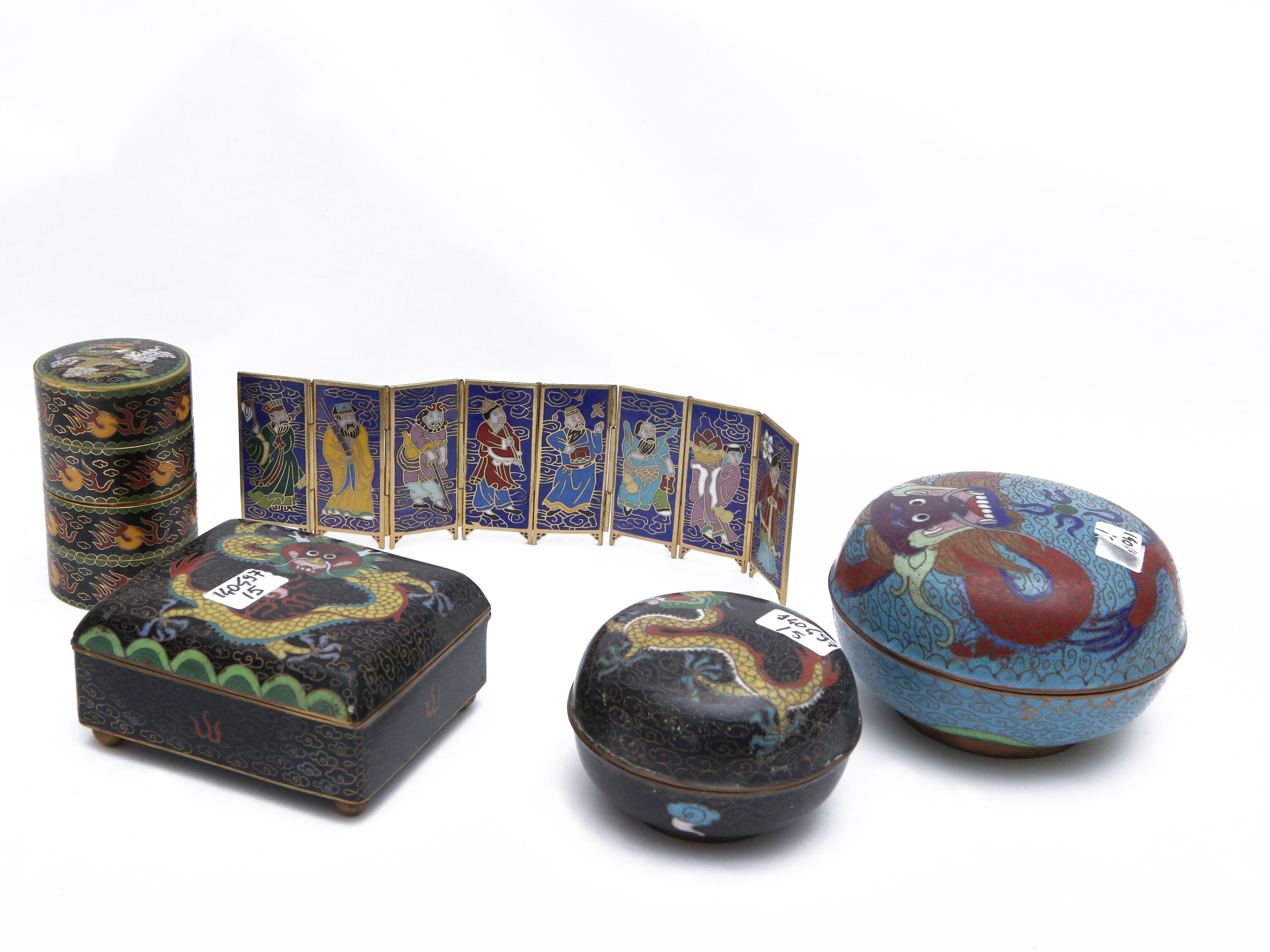 Cina composto da un paravento in miniatura ed alcune scatole (5)