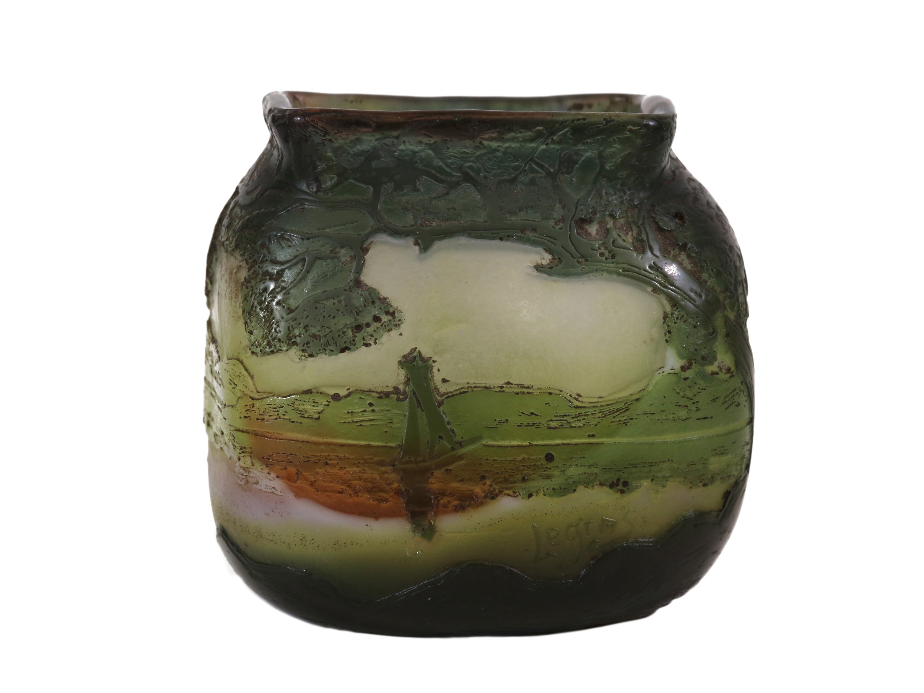 Francia, 1900 circa con decoro di paesaggio sui toni del verde. Legras & Cie Saint-Denis. Firmato Legras.