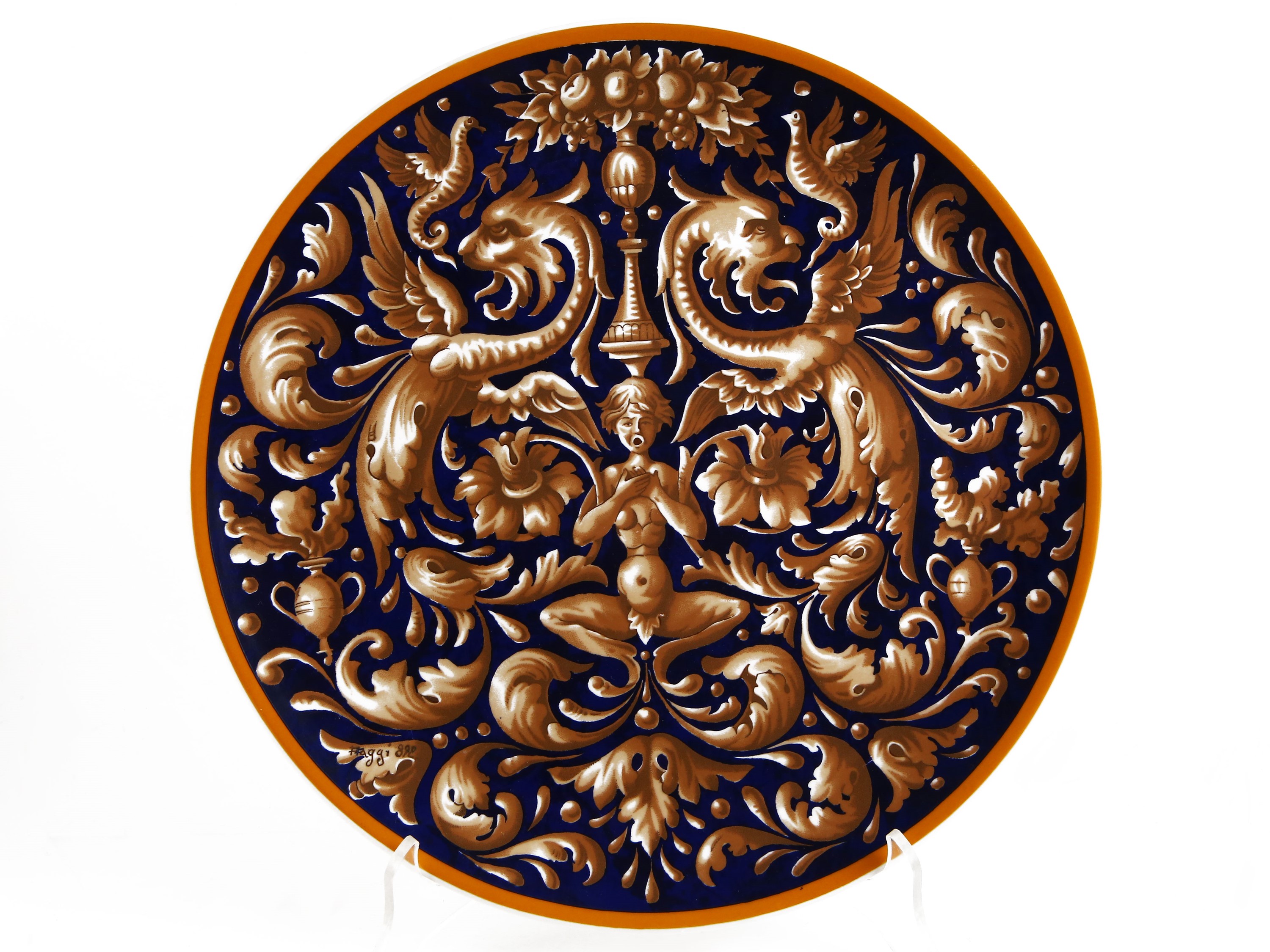 1948 dipinto a grottesche nei toni del giallo e dell’ocra su fondo blu, lievi difetti