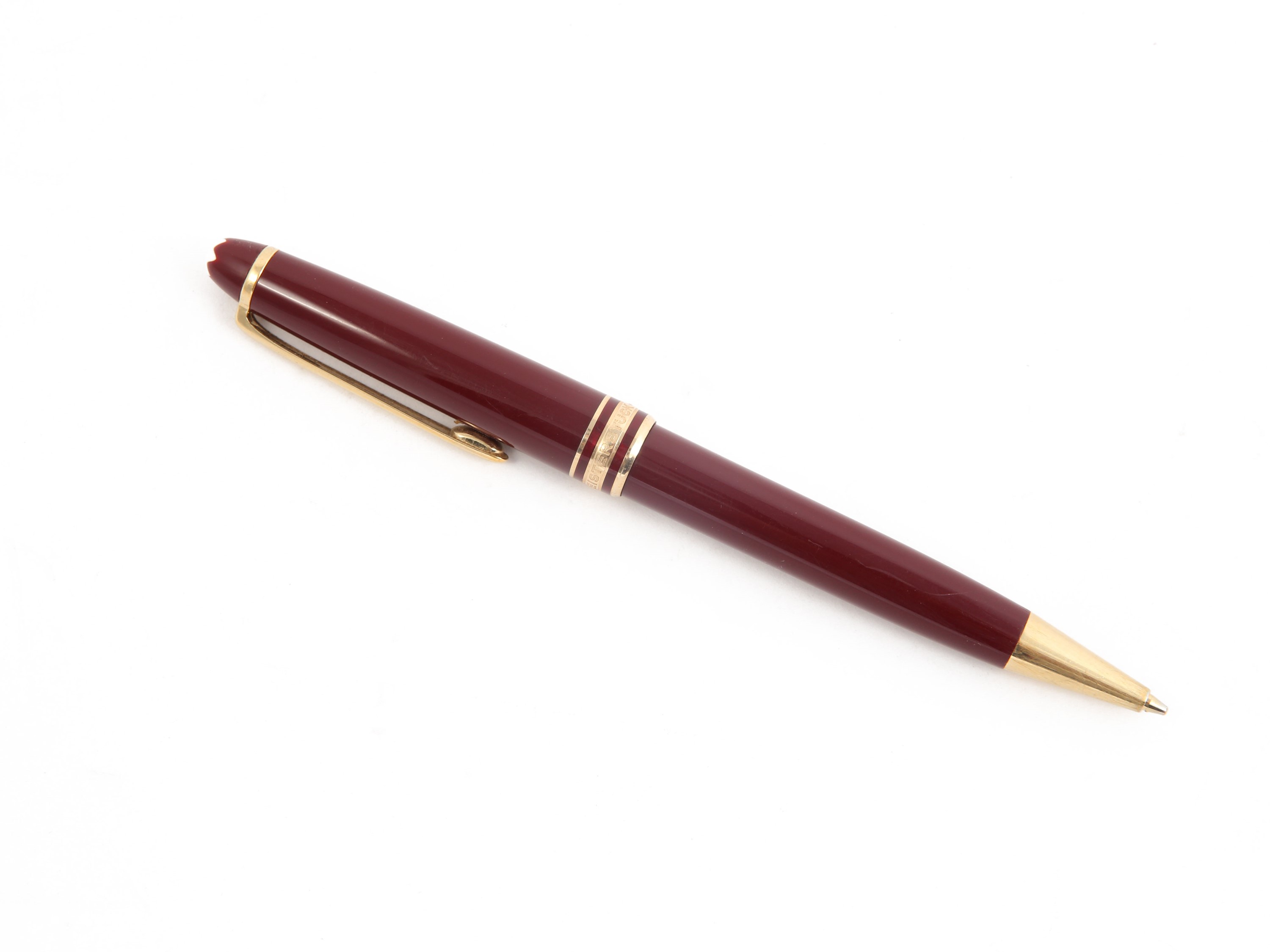 Germania fusto in resina bordeaux, finiture in metallo dorato, corredato di astuccio originale, possibili difetti