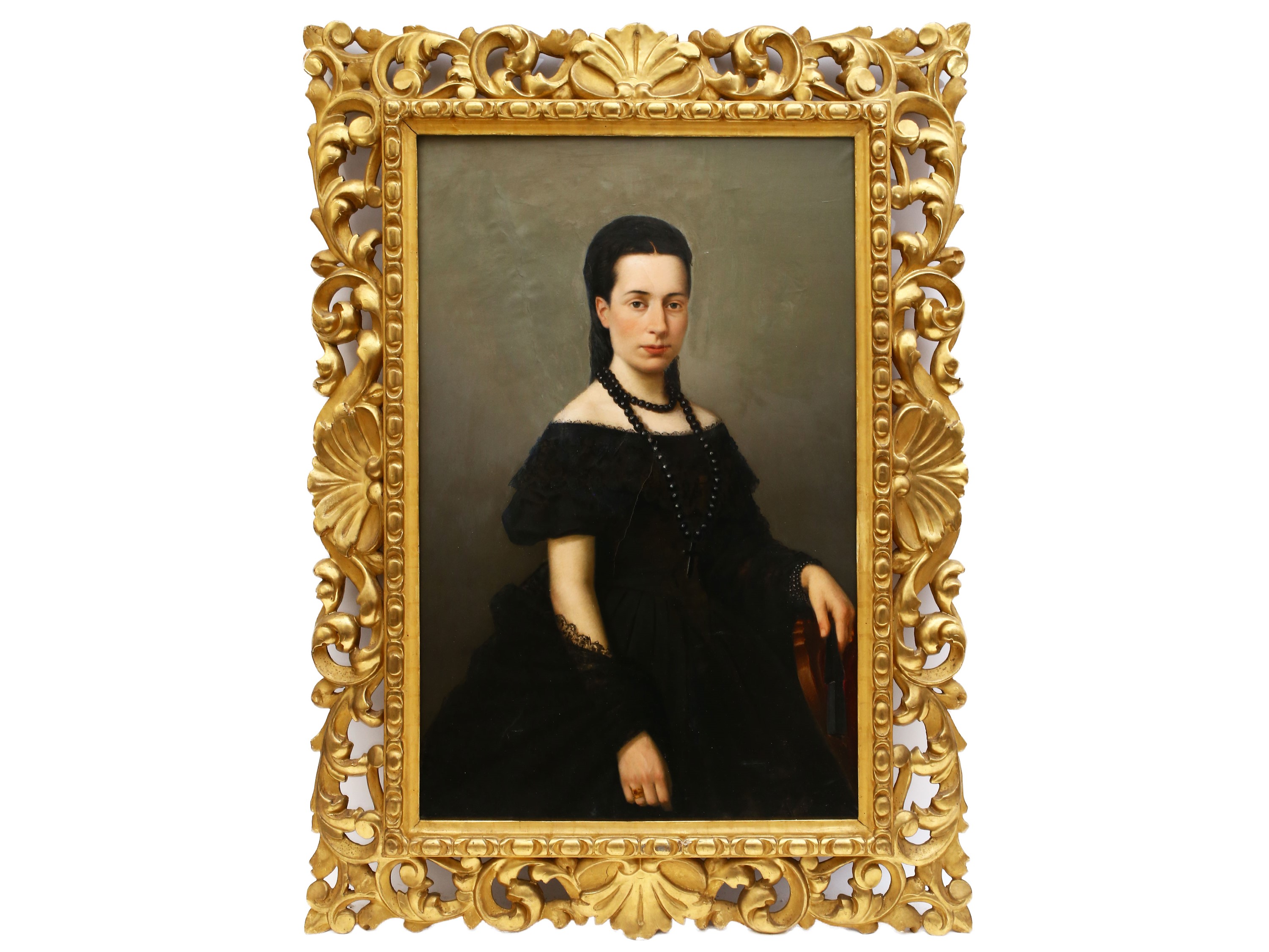 olio su carta applicata a tela, in cornice intagliata e dorata, difetti e restauri