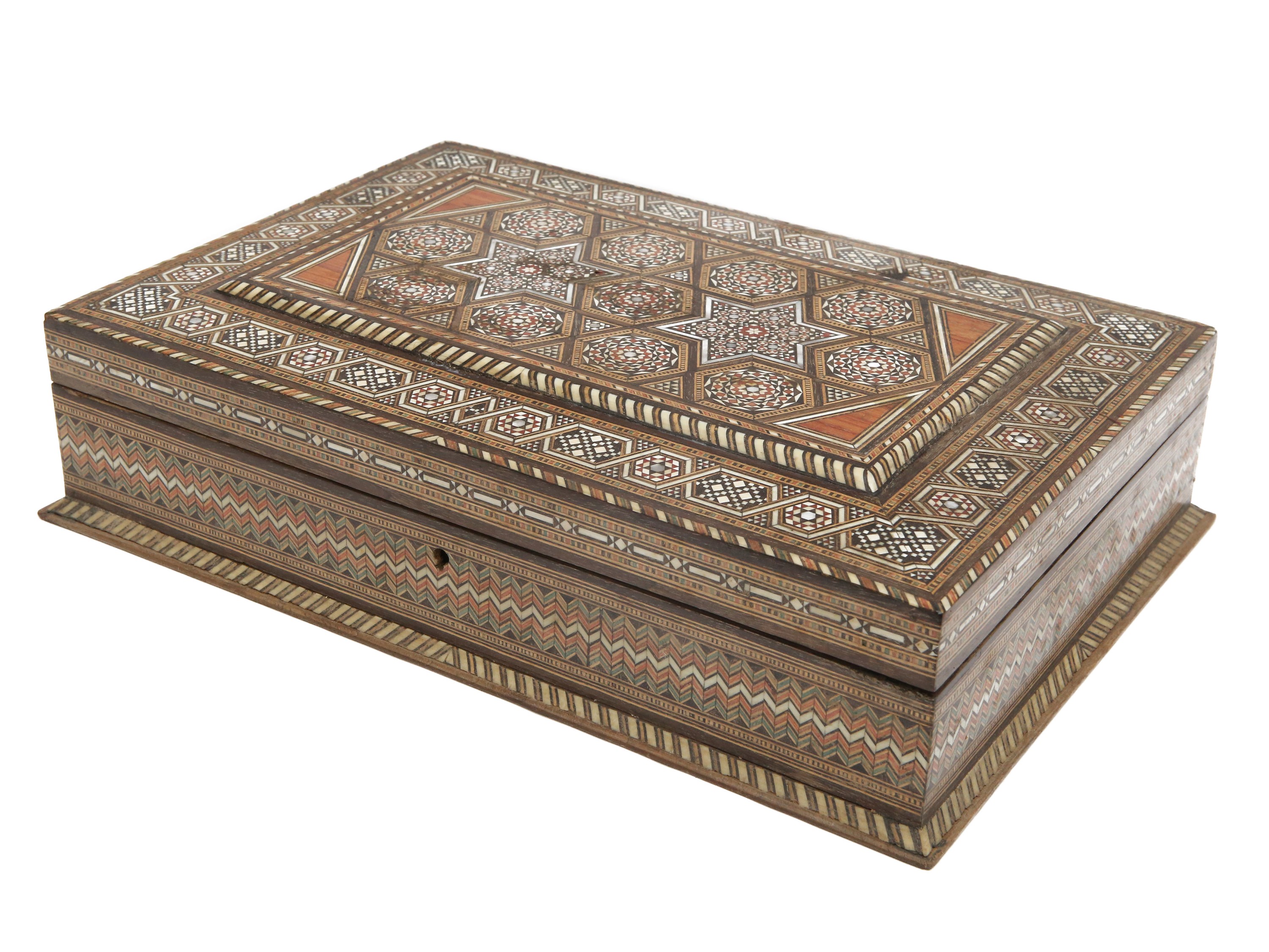 Scatola in legno intarsiato in varie essenze