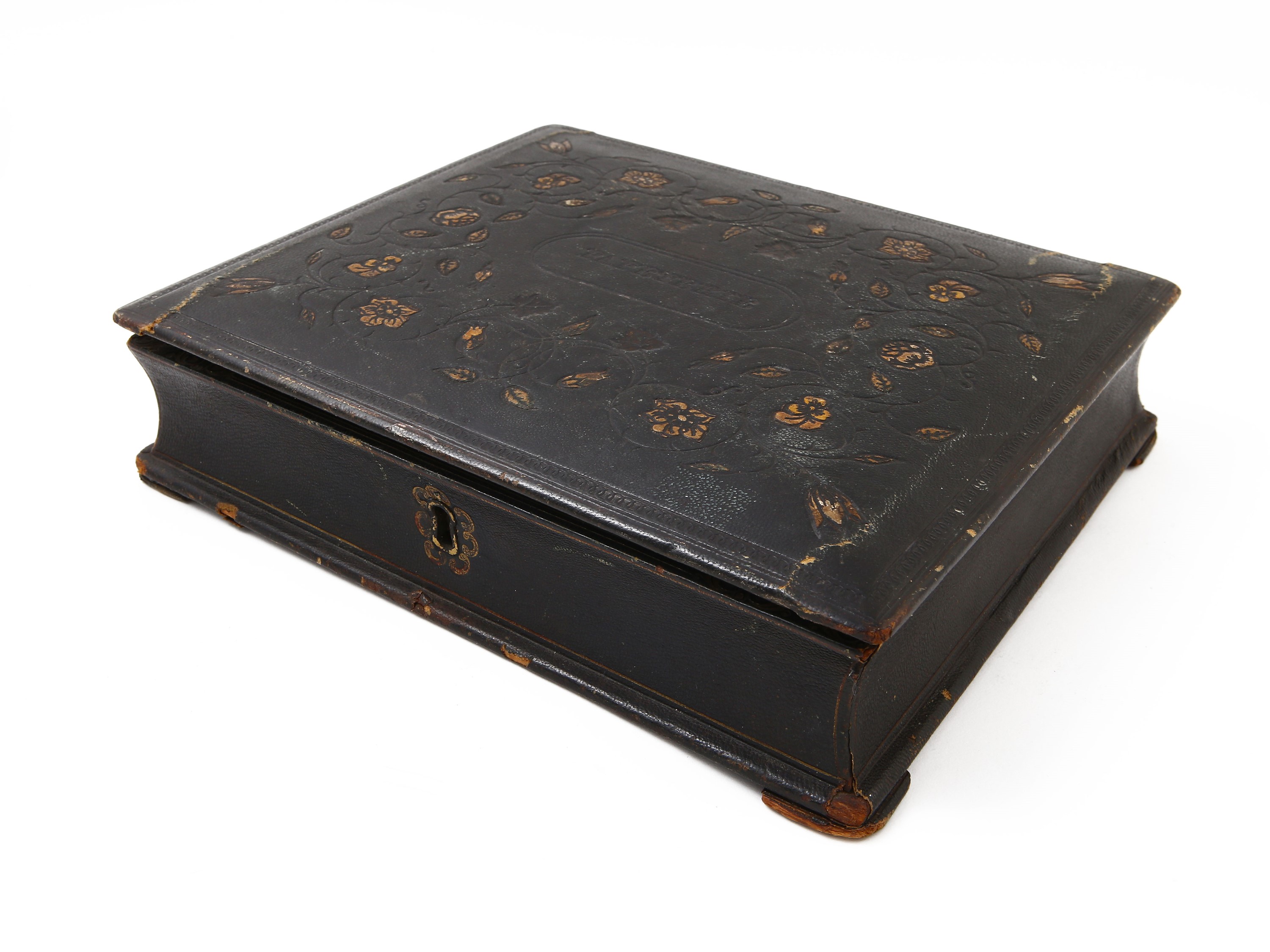 Scrittoio da viaggio rivestito in cuoio impresso