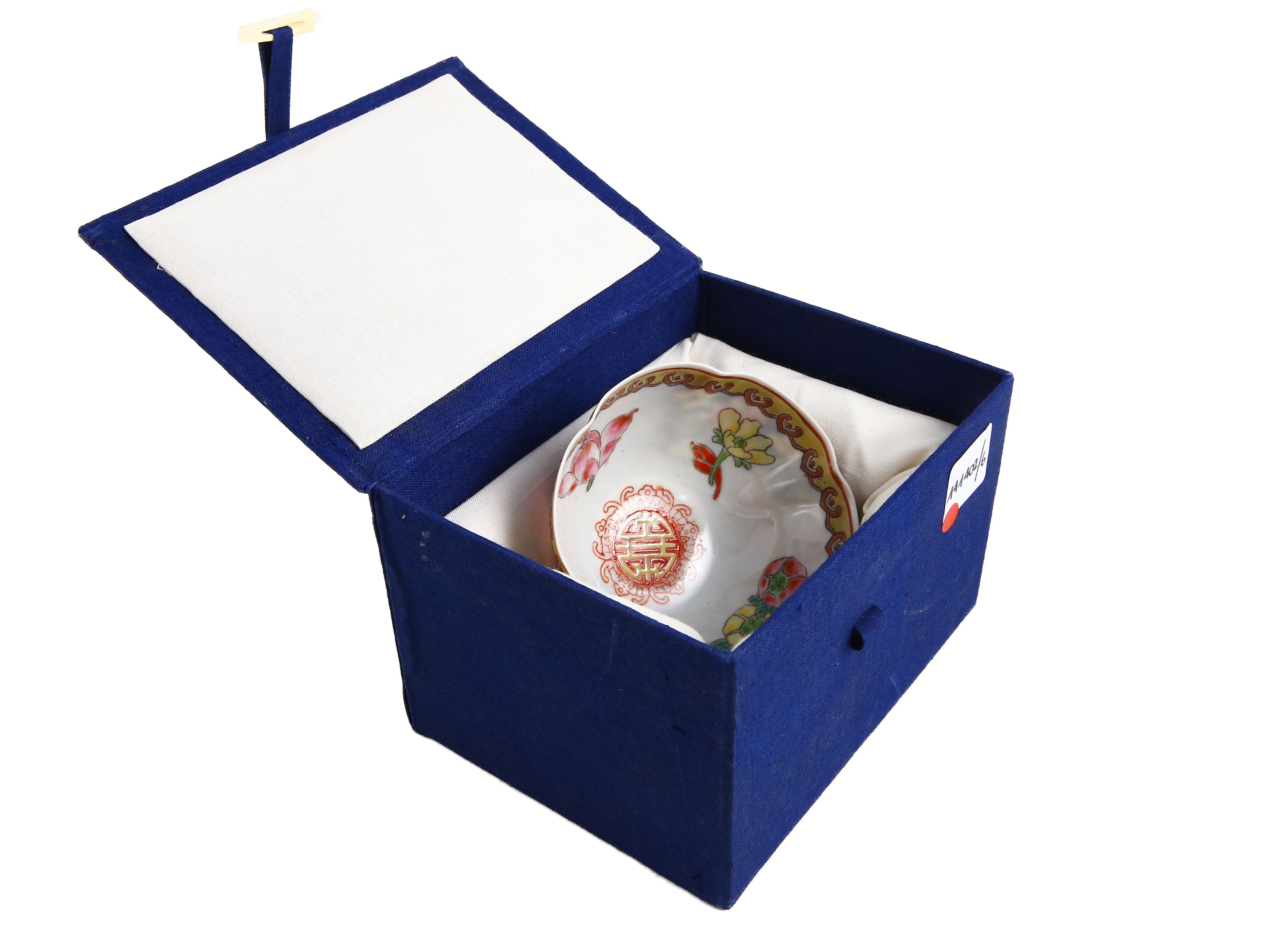 Manifattura Orientale dipinte a motivi vegetali, floreali e scene di genere, entro scatole originali