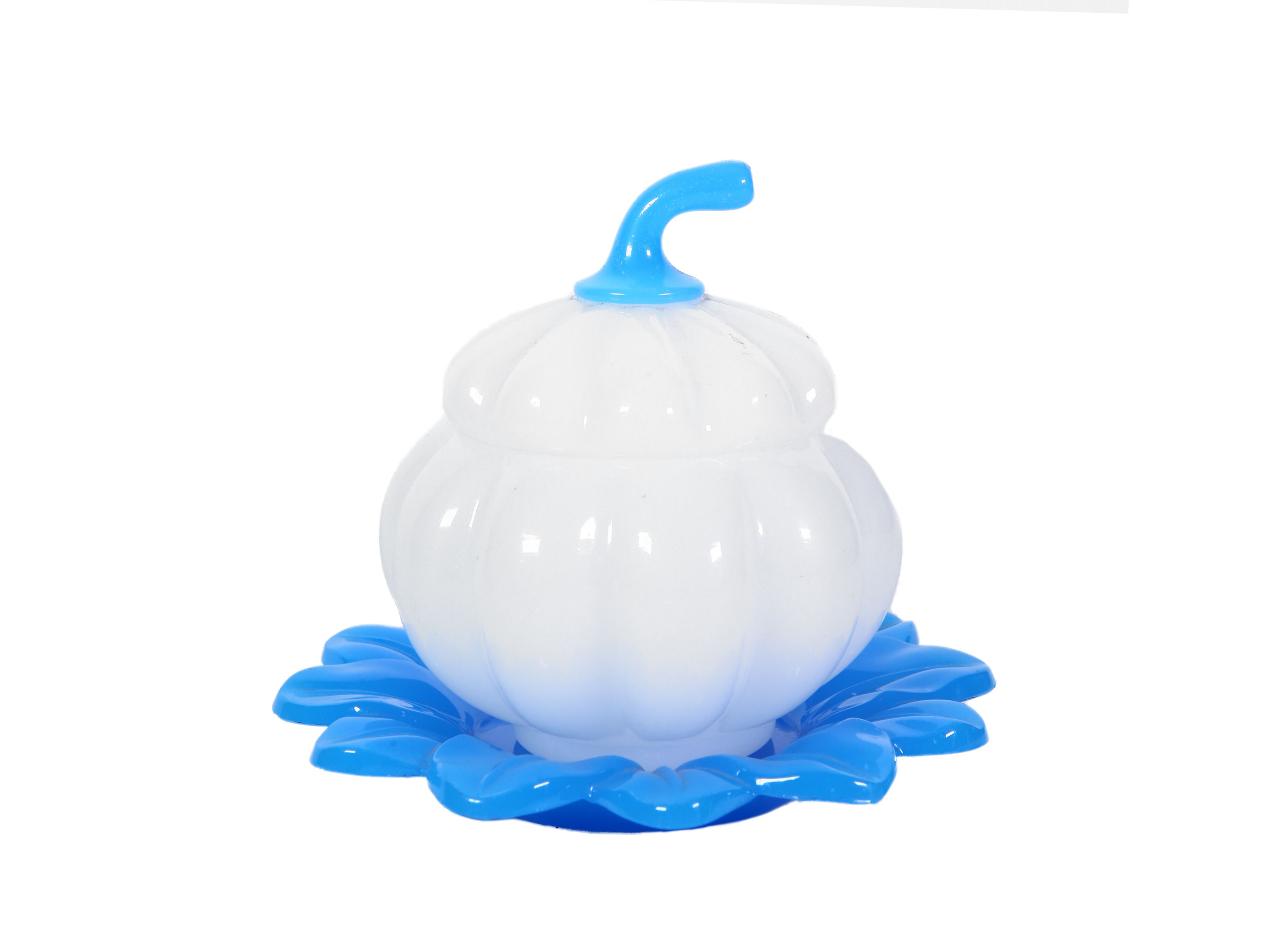 fine del XIX/inizio del XX secolo realizzata come una zucca di colore bianco, corredata da un piattino a fiore di colore azzurro
