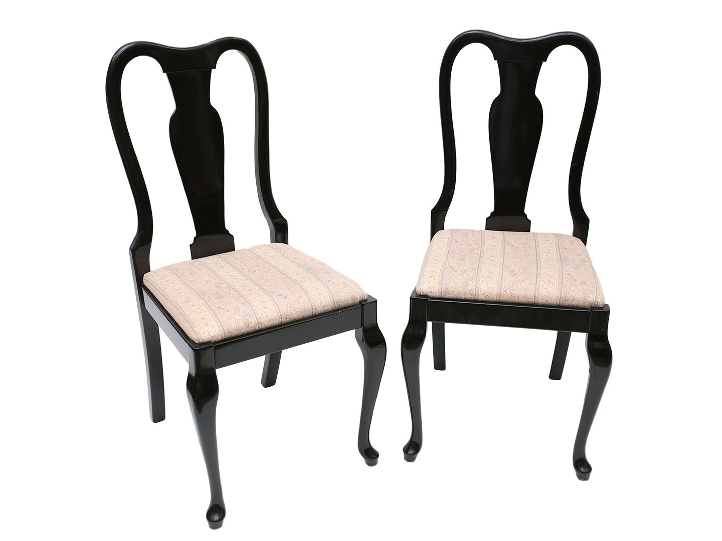 schienale a giorno, sedute imbottite e foderate in tessuto rigato con motivi floreali stilizzati nei toni del rosa
