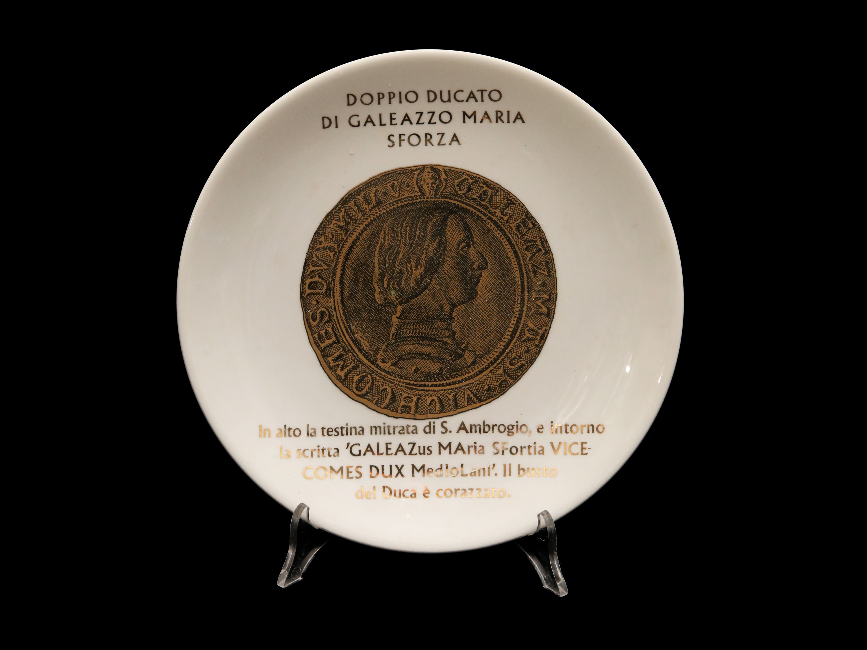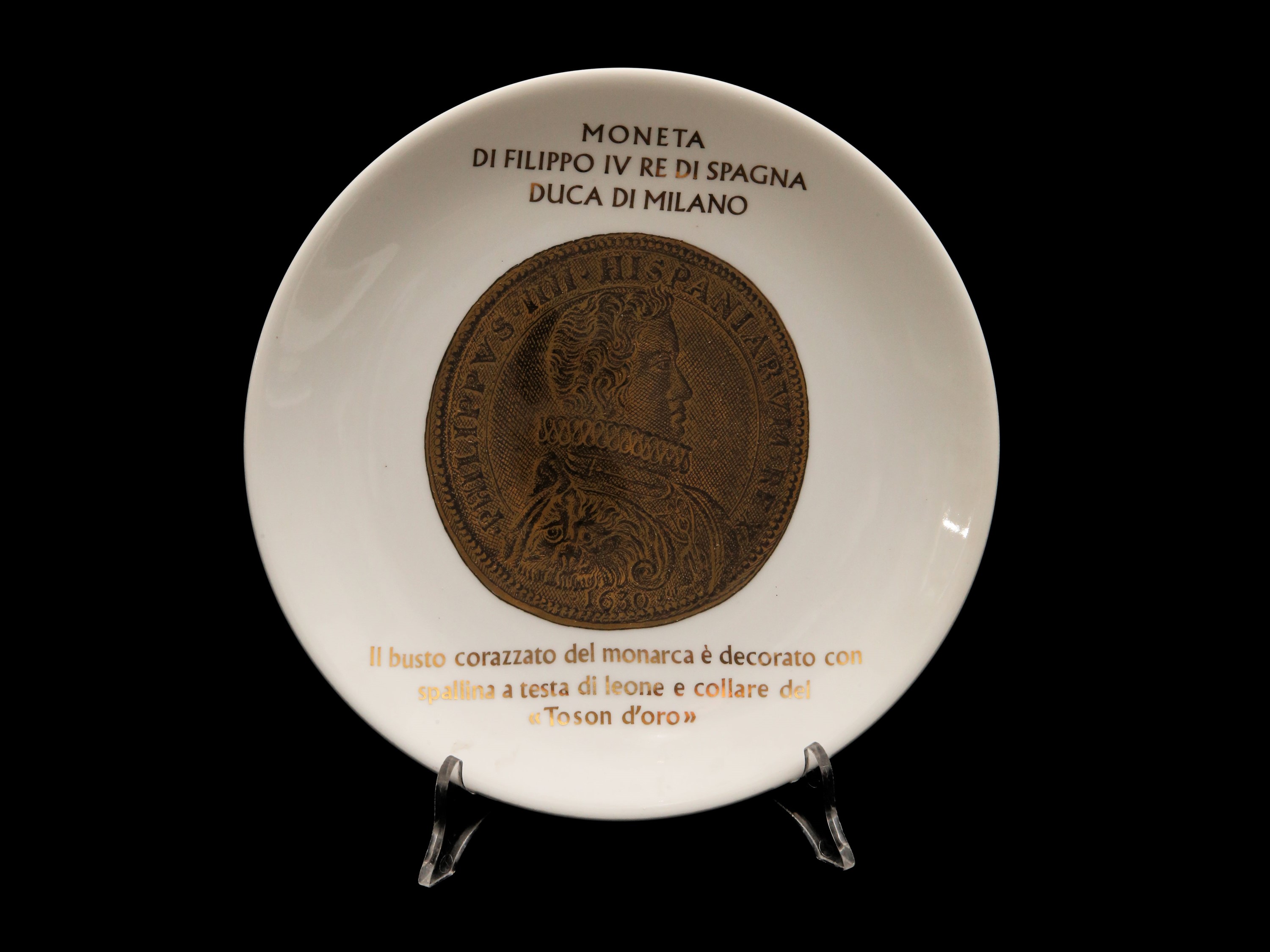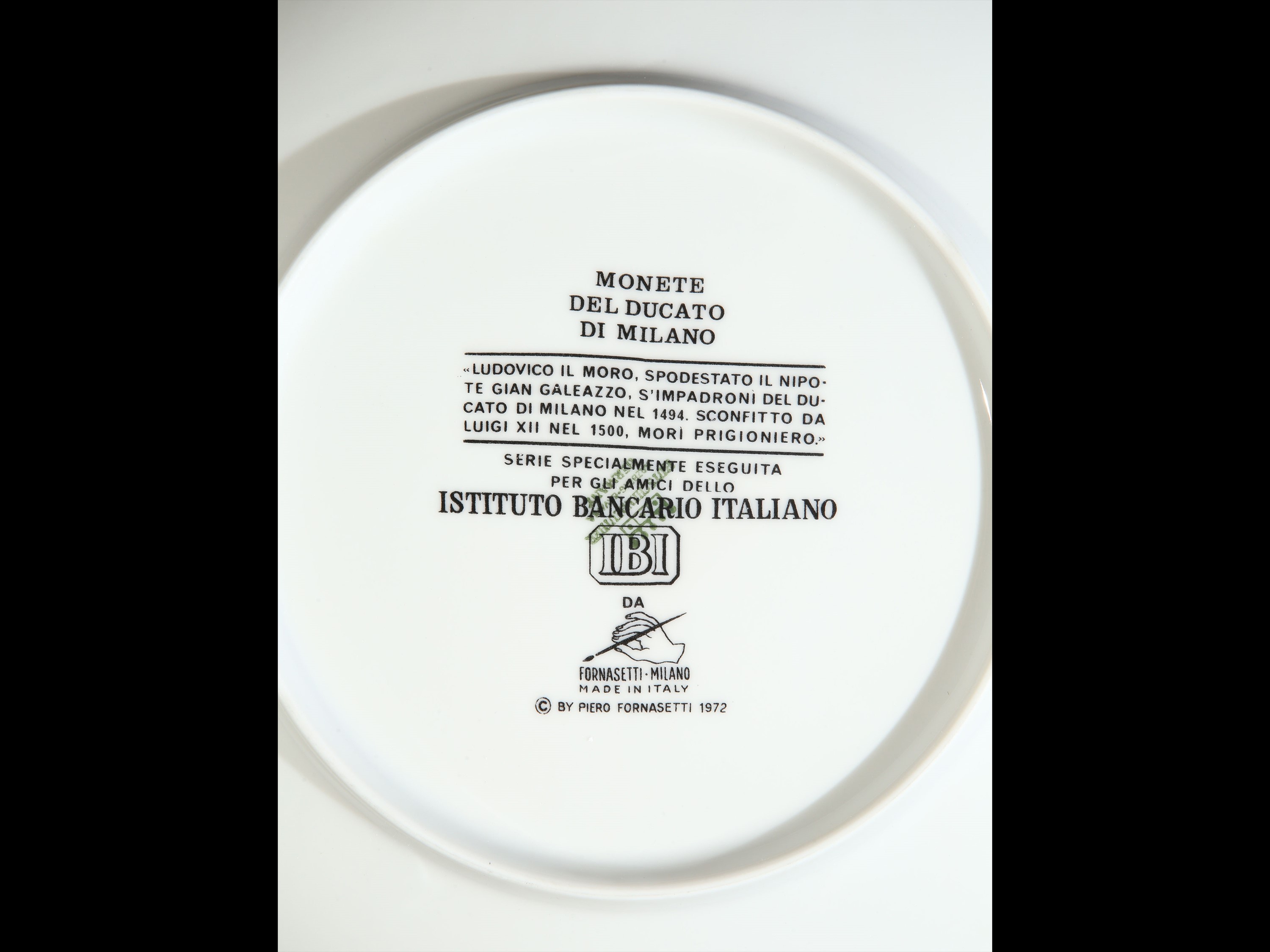 Serie di tre piatti in porcellana, Monete del Ducato di Milano, Fornasetti