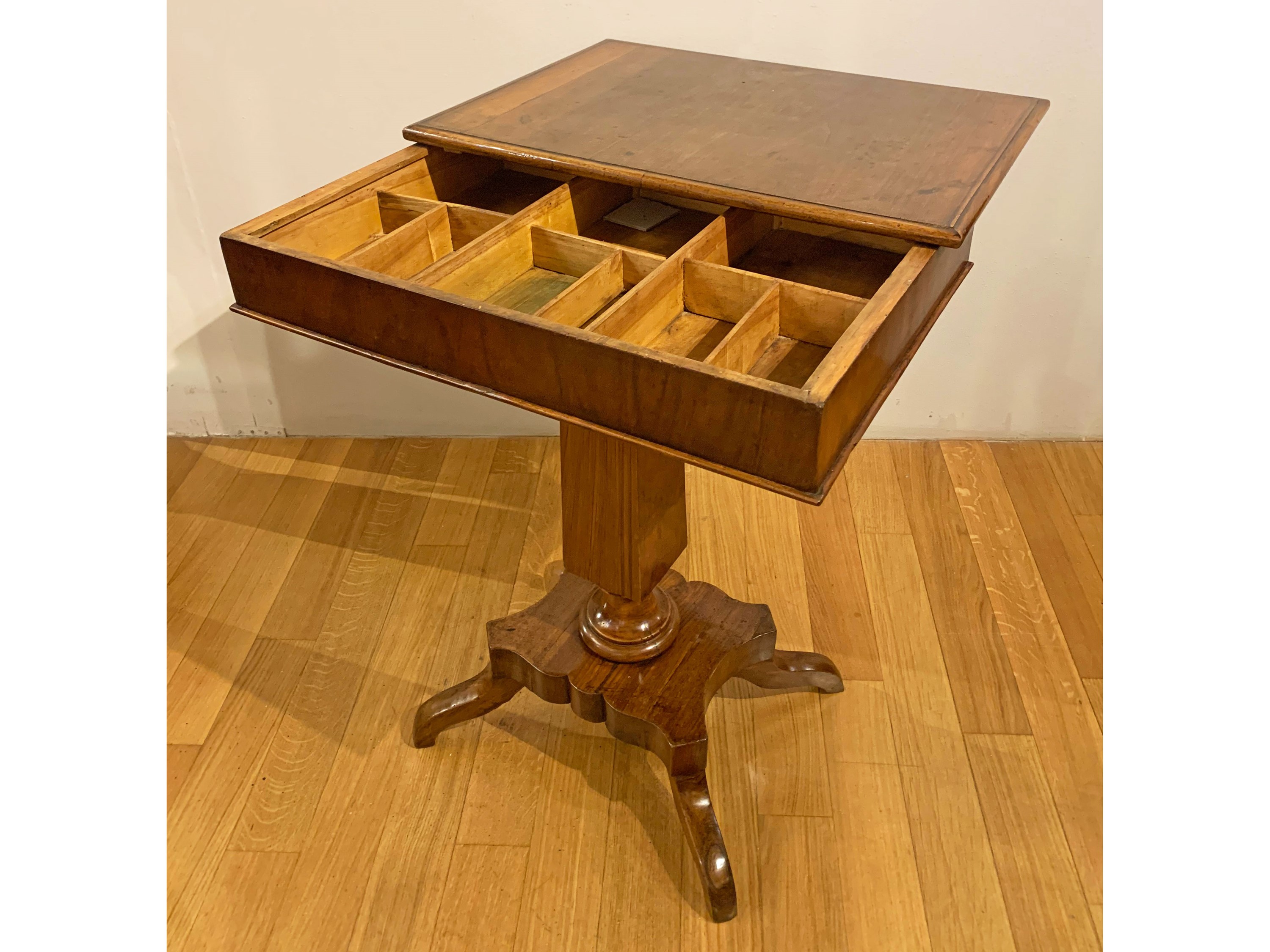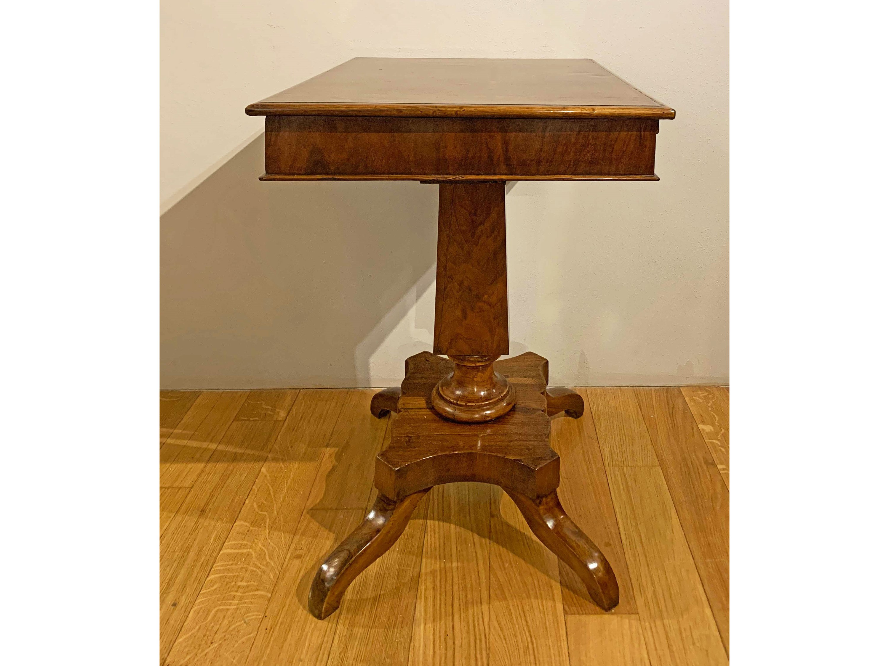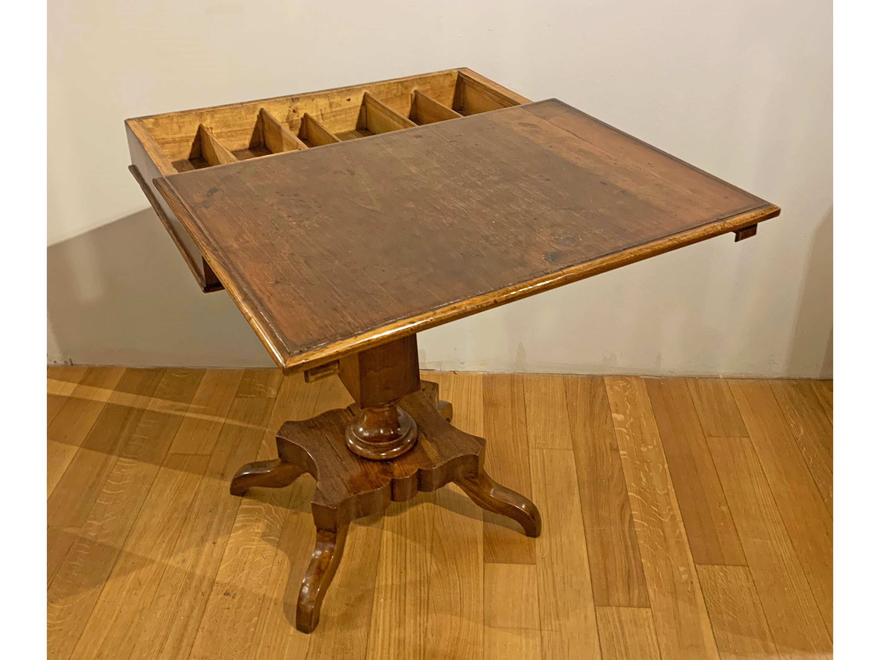 prima metà del XIX secolo piano scorrevole a celare vano, sostegno centrale su base a quattro piedini a doppia voluta