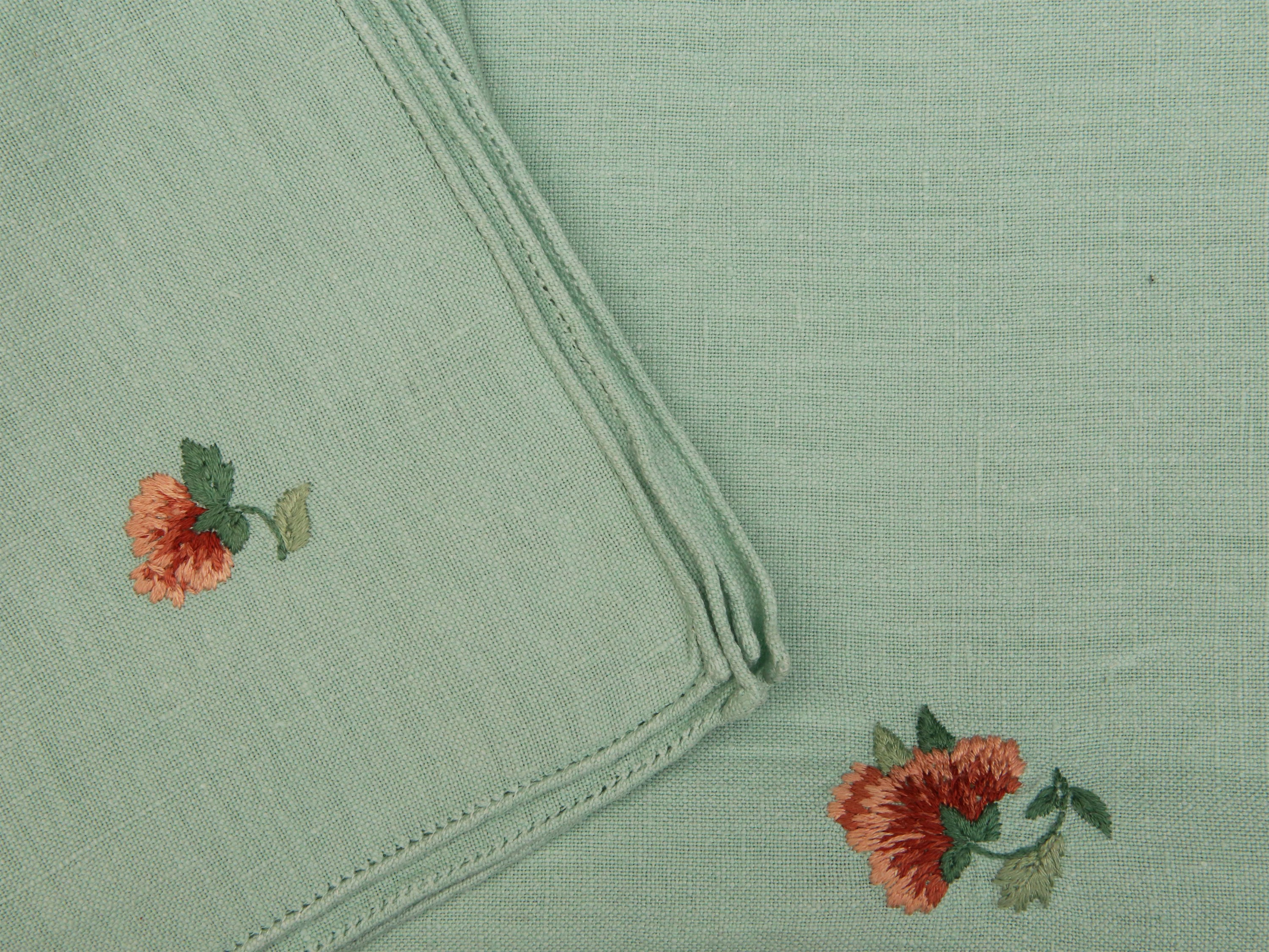 Tovaglia in lino verde menta ricamata