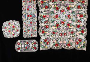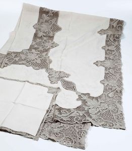Tovaglia e cinque centrini Pratesi di diverse forme e misure