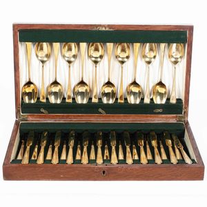 Servizio di posate in cofanetto in legno, XX secolo