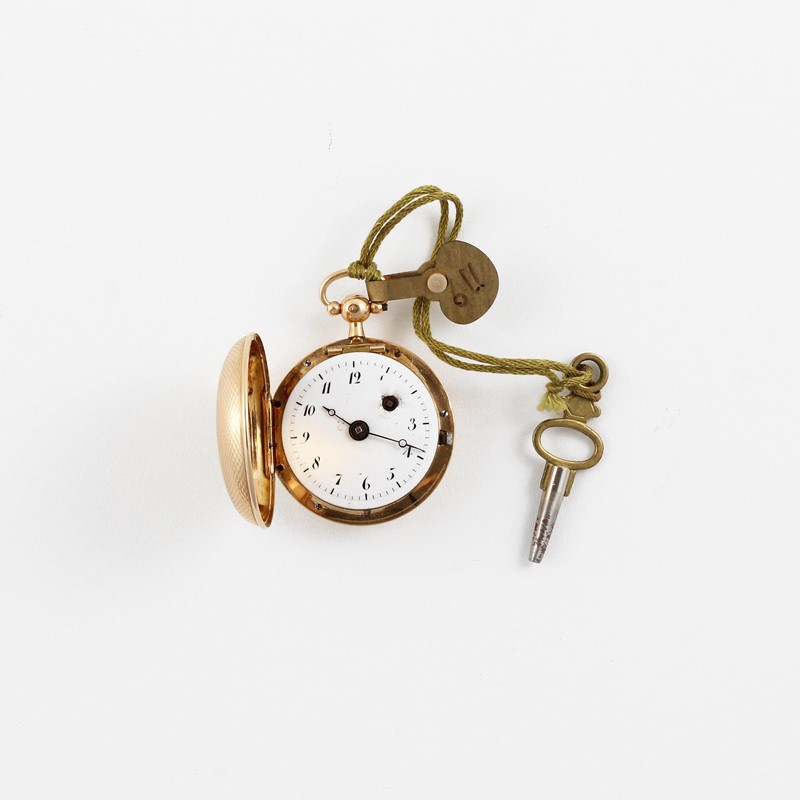 Piccolo orologio da tasca, in oro giallo Diametro: 30 mm Gr: 18.9