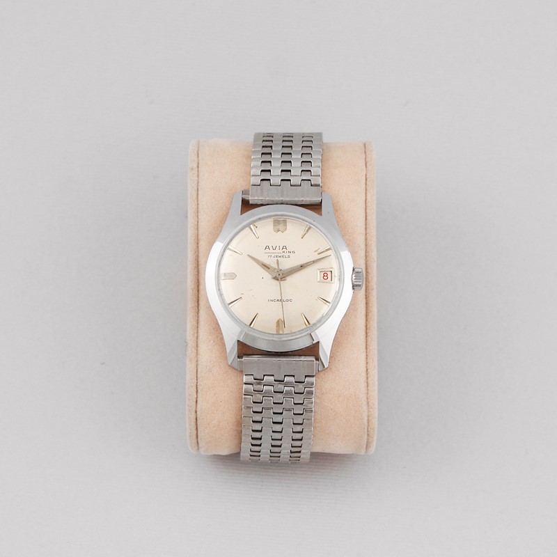 Orologio da polso, in acciaio, con datario. Realizzato nel 1960 circa Diametro: 38 mm