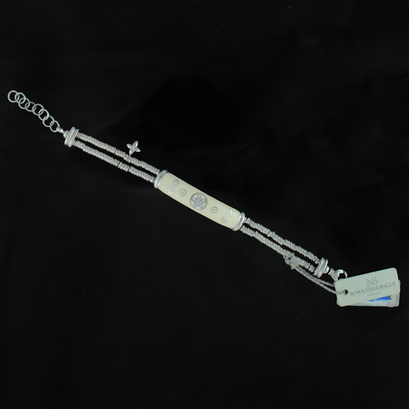 in argento e oro bianco con smalto beige e stelle con brillanti, gr. 22,8.