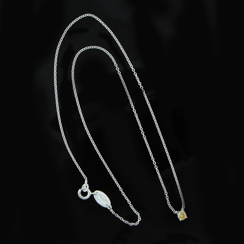 girocollo in oro bianco, con brillante “fancy” sospeso. Brillante del peso complessivo di 0,20 ct ca., gr. 2 ca. Lunghezza 41 cm Firmato: Loris Abate