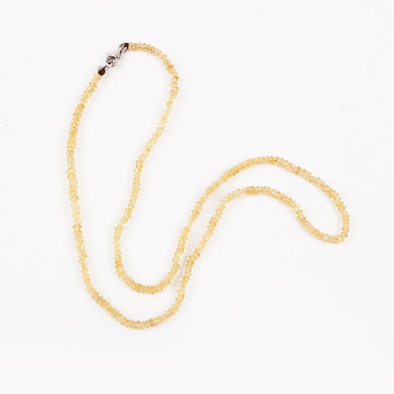 girocollo ad un filo di sferette sfaccettate in quarzo citrino con chiusura a moschettone in oro bianco. Lunghezza 45,5 cm