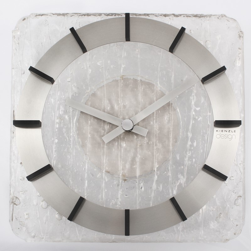 Orologio da parete, al quarzo, in vetro acrilico e alluminio Realizzato nel 1970 Accompagnato dalla scatola originale e libretto Dimensioni: 26 x 26 cm