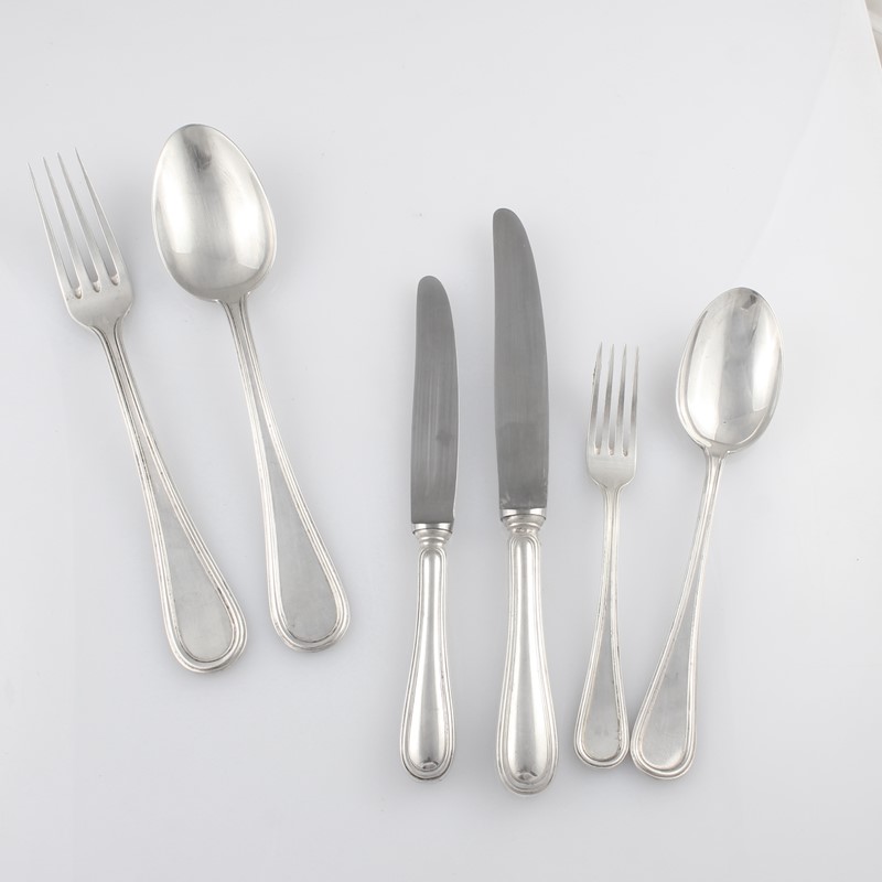 in argento 800, composto da 54 pezzi, gr. 1820 ca. Numerario “30 PD” e “76 PD” Manifattura Italiana