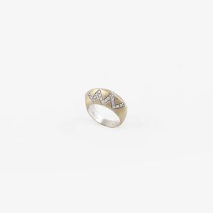 in oro giallo e bianco con brillanti, gr. 6,4. Misura 15