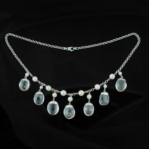 a girocollo in oro bianco con perle coltivate e gocce di cristallo di rocca, gr. 36 ca.