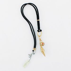 con cordoncino in seta con pendente in oro giallo a forma di doppio cono e sfera traforati con brillanti e smalto, [..]