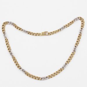 a groumette in oro giallo e bianco con piccoli brillanti, uno mancante, gr. 29,1 Lunghezza 39 cm
