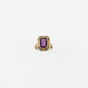 in oro giallo e argento cesellato con brillanti, cammeo in ametista al centro, gr. 10,1. Misura 21