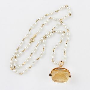a un filo di perle coltivate d’acqua dolce, pendente con al centro sigillo con quarzo citrino inciso montato [..]