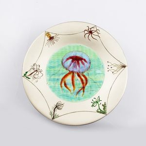 in argento 900 con piatto circolare interamente smaltato. Al centro un tondo a sfondo verde-azzurro simulante [..]