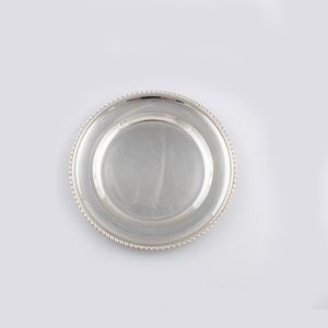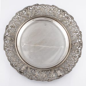 in argento 800 a forma circolare, con bordo inciso e traforato a motivi vegetali, gr. 640 ca. Diametro 33 cm Numerario [..]