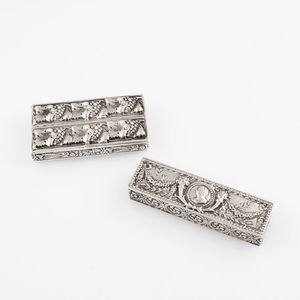 in argento 925 e 800, a forma rettangolare finemente sbalzate, una con pampani e grappoli d’uva sul coperchio [..]