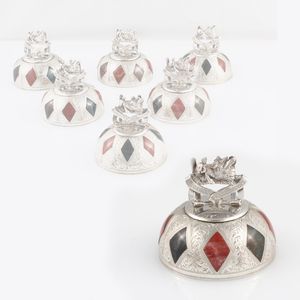 in argento, a forma di cupola con riporti romboidali in diaspro verde e rosso, gr. 620 ca. Edimburgo 1910