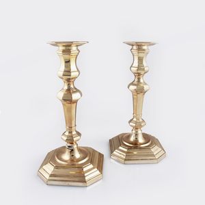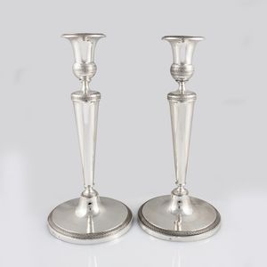 in argento 800, a una luce, bordo gradinato ottagonale, fusto a fuso ottagonale, gr. 900 ca. Altezza 26 cm Numerario [..]