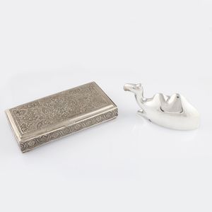 in argento 925 e 800, cammello firmato “De Vecchi” e scatola di gusto orientale, gr. 584.5