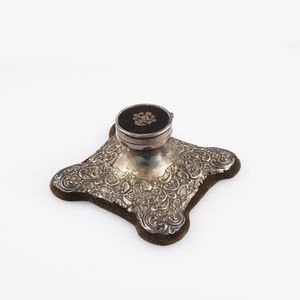 in argento 925, con base sbalzata a volute e motivi floreali. Dimensioni 16x11x6 cm. Numerario 572 MI Ditta [..]