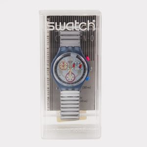 Orologio da polso, in plastica, cronografo, al quarzo Ref: SCN110 Realizzato nel 1994 circa Diametro: 37 mm Accompagnato [..]