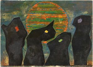 Acrilico su tela, cm. 55x38 1959 Firma, titolo, data e numeri al verso sulla tela: Gianni Bertini / Le cyclope [..]